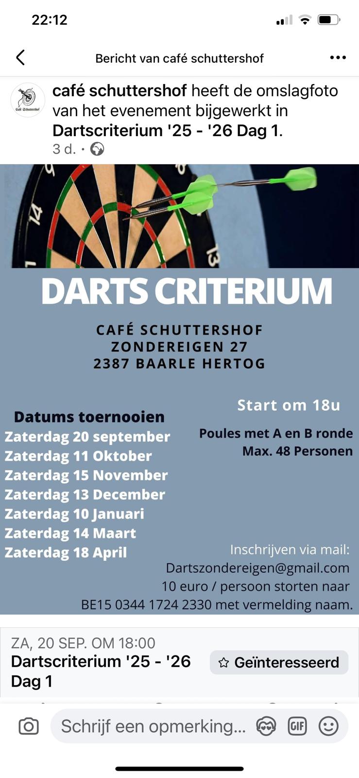 You can register for this tournament using dartsspace until:Registration open
