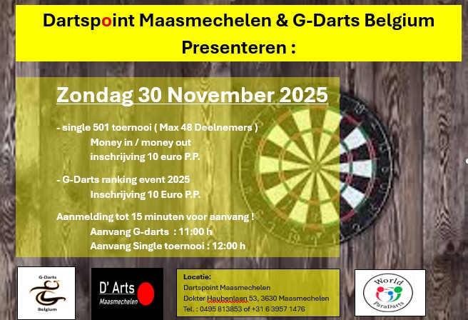 Vrijdag 501 toernooi @ Dartspoint Maasmechelen