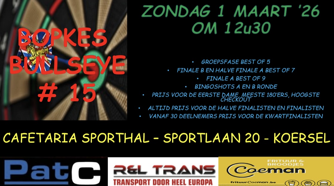 Pat's Bullseye (28/1/2026) @ Cafetaria Sporthal Curticella - Lucky Arrows