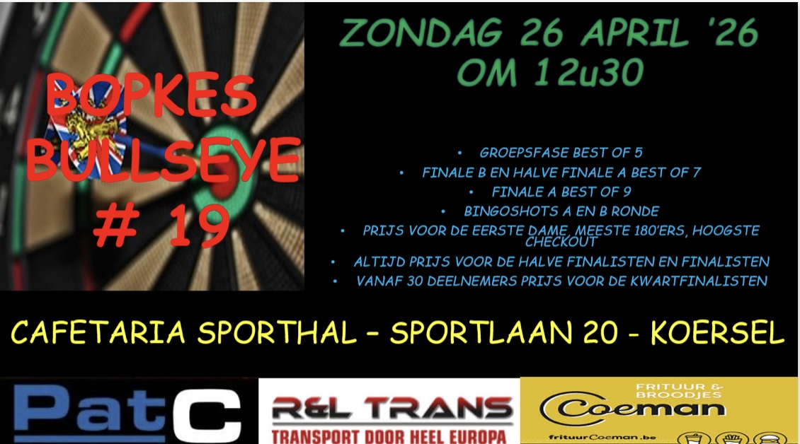 Pat's Bullseye (28/1/2026) @ Cafetaria Sporthal Curticella - Lucky Arrows