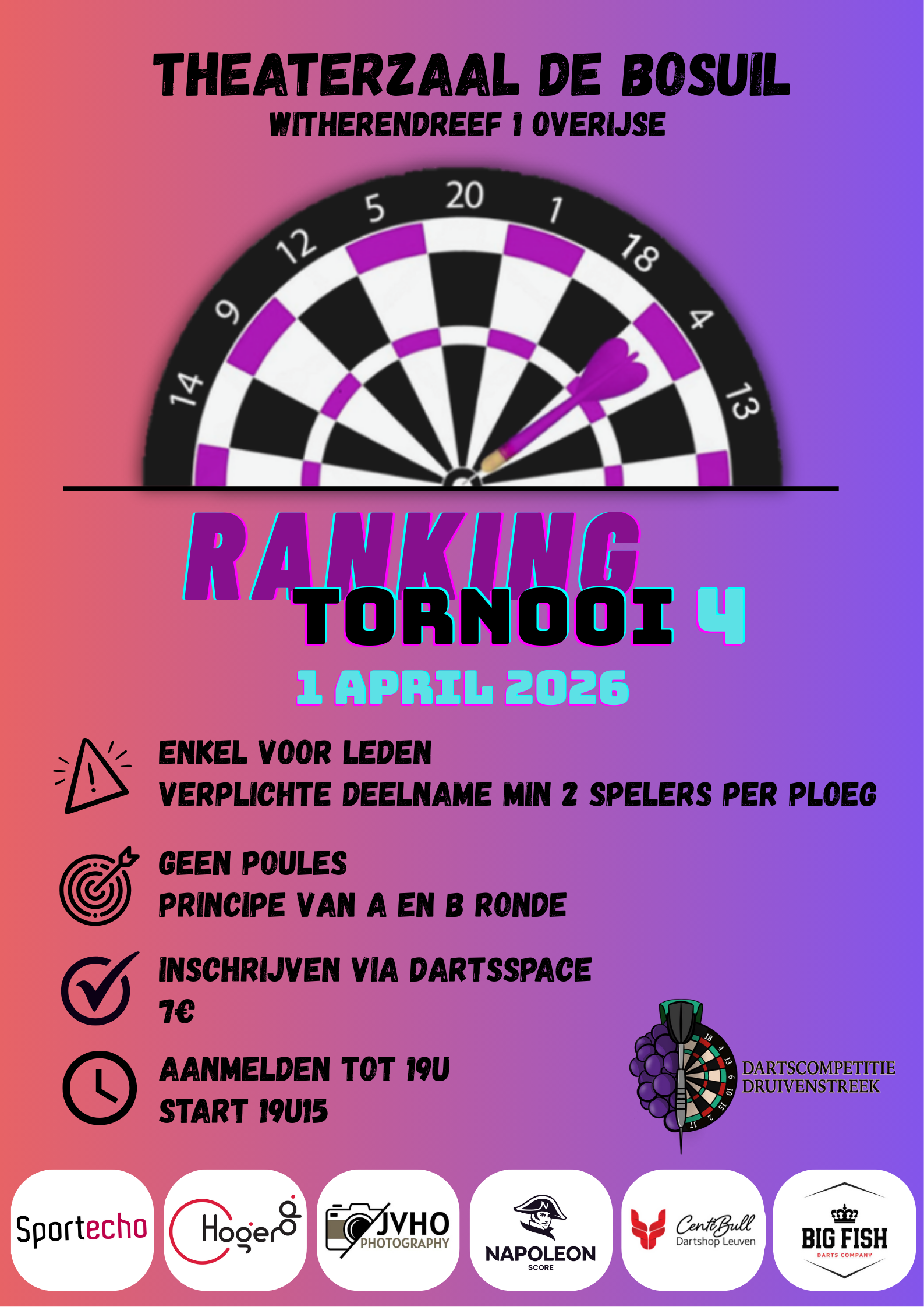 Rankingtornooi 4 Dartscompetitie Druivenstreek