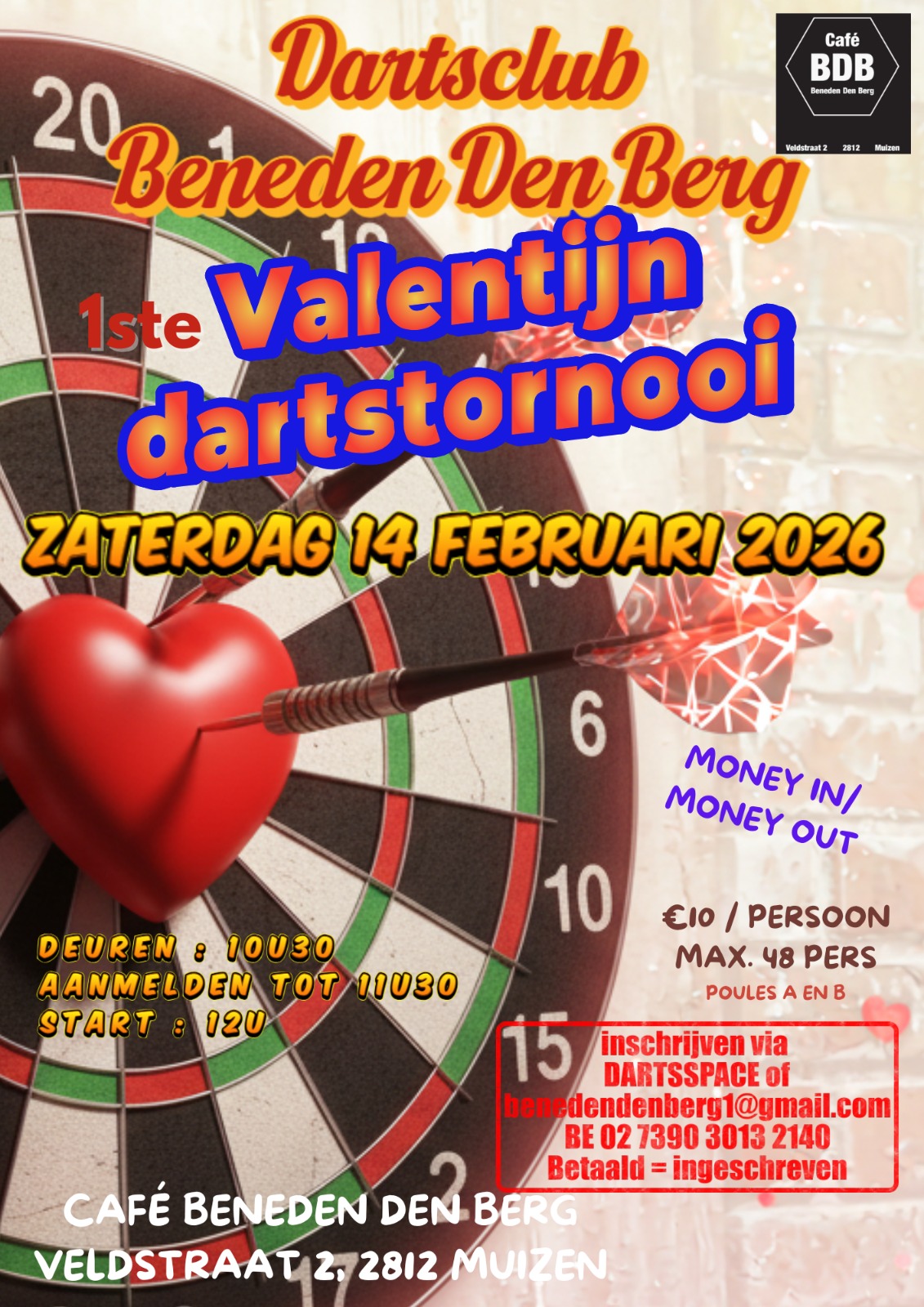 Je kunt je voor dit toernooi inschrijven via dartsspace tot:Vol